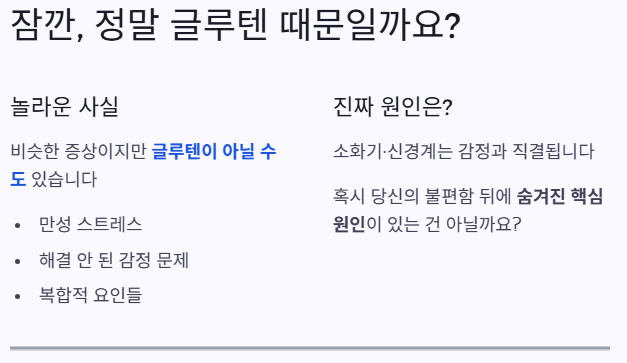 특히 만성 스트레스나 해결되지 않은 감정적 문제는 소화기 계통과 신경계에 직접적인 영향을 미칩니다. 혹시 당신의 불편함이 '글루텐'이라는 이름 뒤에 숨겨진 또 다른 '핵심 원인' 때문은 아닐까요?