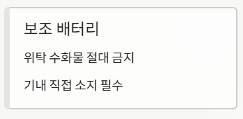 | 구분 | 기내 수화물 | 위탁 수화물 |