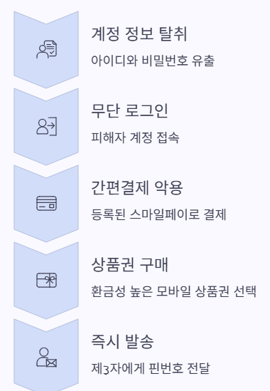 - 피해 품목: 대부분 환금성이 좋은 '모바일 상품권' 구매에 집중됨