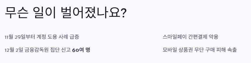 바로 간편결제 시스템인 '스마일페이'를 통한 무단 결제 피해 사례가 속출하고 있다는 것인데요. 불과 몇 시간 전인 12월 2일, 금융감독원에 60여 명이 집단 신고를 접수했다는 뉴스가 보도되었습니다.